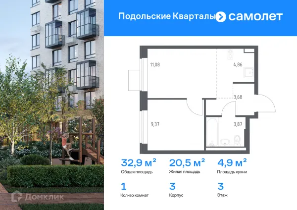 1 комн. квартира в Москве в ипотеку от 66 909 руб/месяц