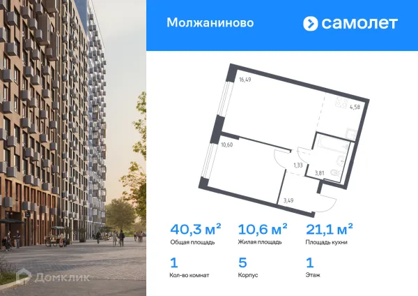 1 комн. квартира в Москве в ипотеку от 95 427 руб/месяц