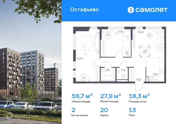 2 комн. квартира в Москве в ипотеку от 80 097 руб/месяц