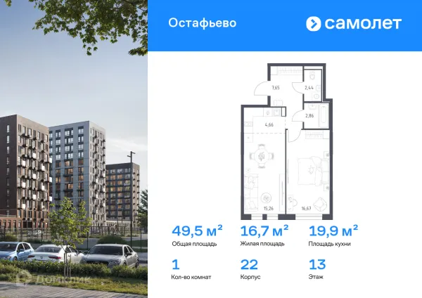 1 комн. квартира в Москве в ипотеку от 57 199 руб/месяц