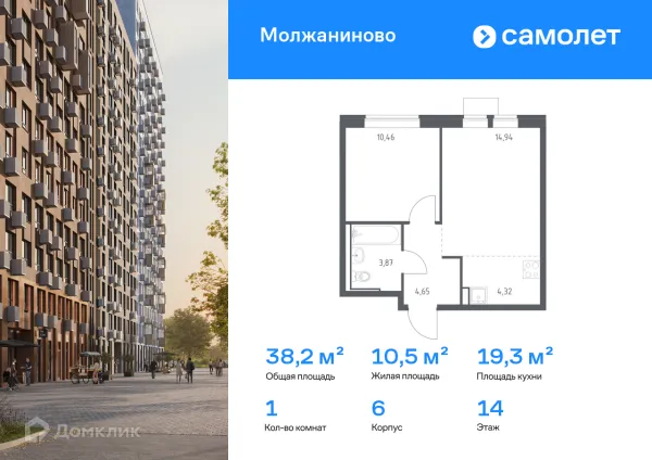 1 комн. квартира в Москве в ипотеку от 69 754 руб/месяц