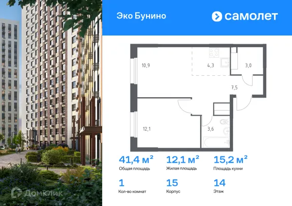 1 комн. квартира в Москве в ипотеку от 108 411 руб/месяц