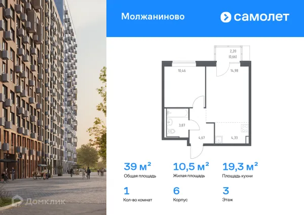 1 комн. квартира в Москве в ипотеку от 98 050 руб/месяц