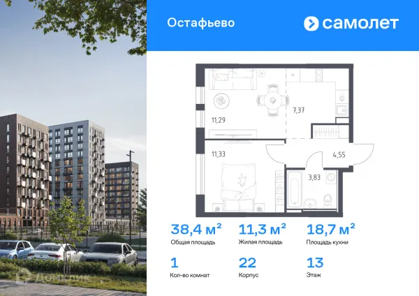 1 комн. квартира в Москве в ипотеку от 60 406 руб/месяц