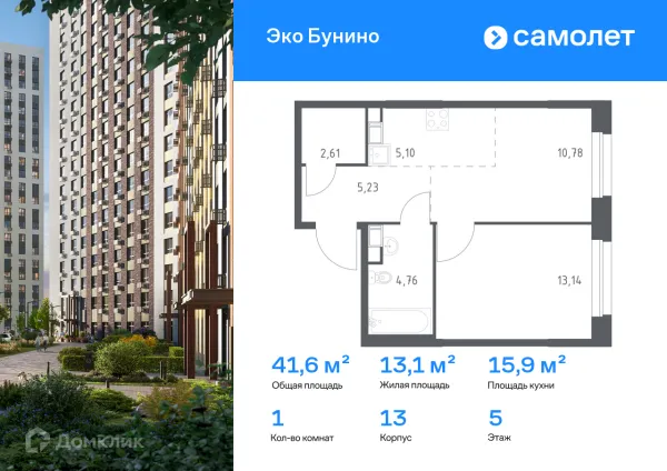 1 комн. квартира в Москве в ипотеку от 84 510 руб/месяц