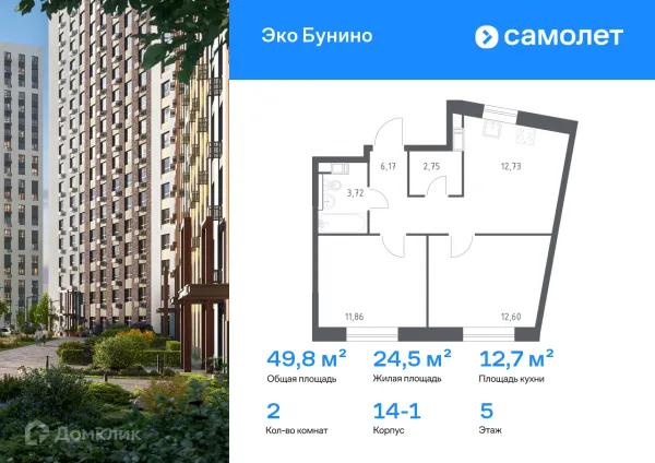 2 комн. квартира в Москве в ипотеку от 75 512 руб/месяц