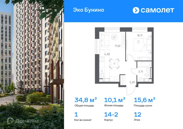 1 комн. квартира в Москве в ипотеку от 106 224 руб/месяц