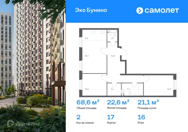 2 комн. квартира в Москве в ипотеку от 128 745 руб/месяц
